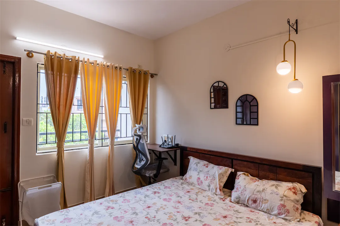 A flat flips into a Flent home in just 5 days! Those days are chaotic in the best way. We plan the basic structure, sure, but most of what you see in the photos was never on a moodboard. It comes together in the moment. The wall detailing, lamp makeovers and art pieces are all created in-house by a team of three designers who respond to what the space needs. That is why every Flent home ends up one of a kind. We design with instinct, not templates :)