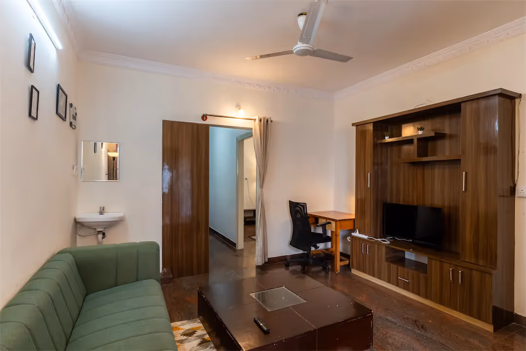 I've been living in this 1 BHK for almost 8 months, and it's incredibly cozy and comfortable. From my bedroom window, I can see Bangalore's cherry blossoms, and the area is quiet and peaceful. Plus, I didn't have to pay a huge deposit.