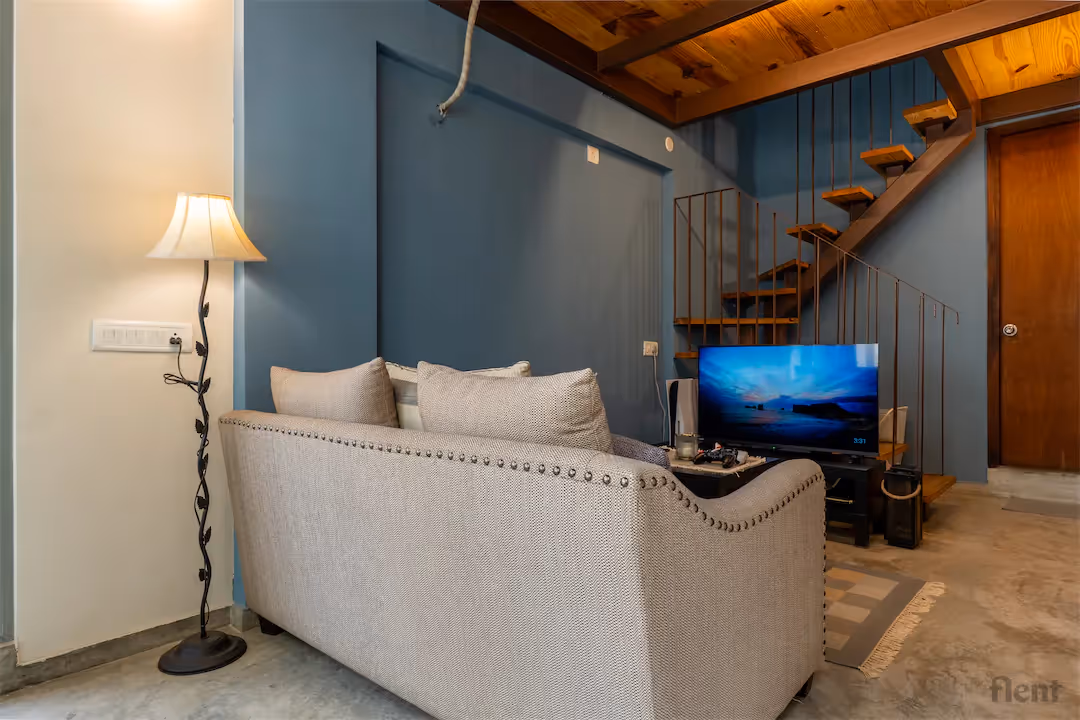 Nestled by BTM Lake, this chic duplex 1BHK blends modern design with natural beauty. Featuring double-height ceilings, floor-to-ceiling windows, and an exposed brick wall, the home is bright and inviting. The lofted bedroom offers a cozy retreat, while the open living area connects seamlessly to a private balcony. Enjoy daily walks along BTM Lake’s scenic trails or relax with a boating experience. Located in BTM Layout, this home offers easy access to IT hubs, top restaurants, shopping, and entertainment, ensuring convenience and connectivity. Perfect for young professionals or couples seeking a stylish yet tranquil retreat.