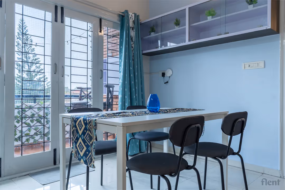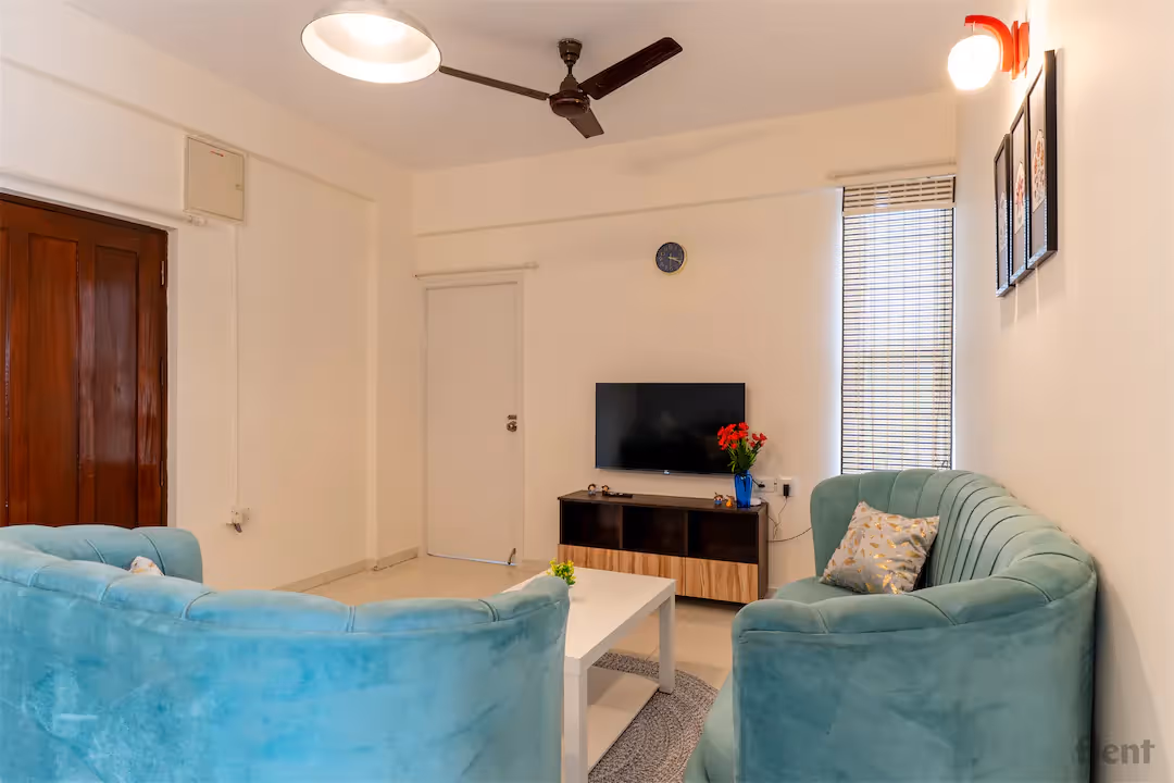This beautifully furnished 3BHK in Mahadevpura blends comfort and elegance in every detail. The living room features plush teal sofas, gold-accented pillows, and a minimalist white coffee table — perfect for unwinding or hosting guests. Soft lighting and pastel wall tones create a warm, welcoming vibe, while curated artwork and thoughtful decor add a touch of personality. The space feels open yet cozy, ideal for young professionals or couples seeking style and serenity in the city. Conveniently located near IT parks and key amenities, this home offers both tranquility and connectivity. Whether you're working from home or relaxing after a long day, this apartment strikes the perfect balance between modern aesthetics and everyday functionality.