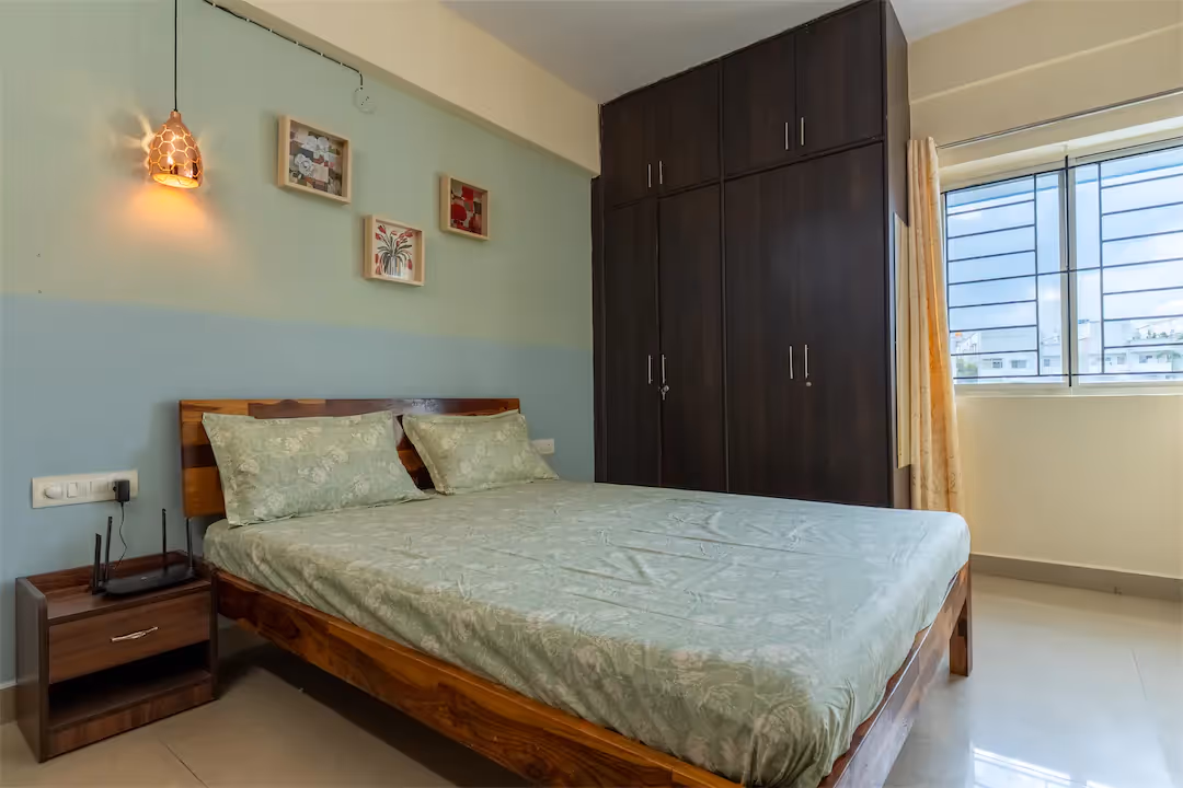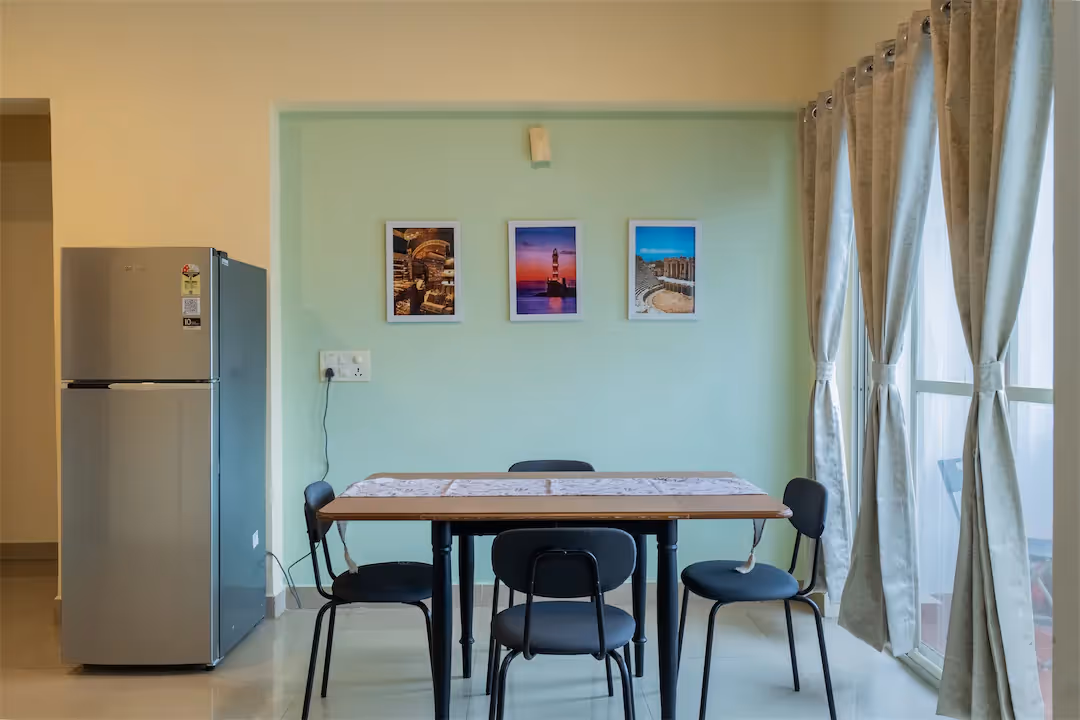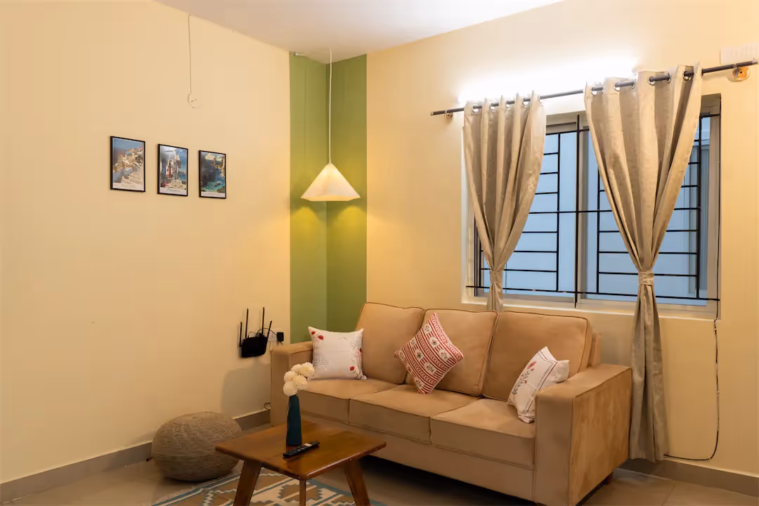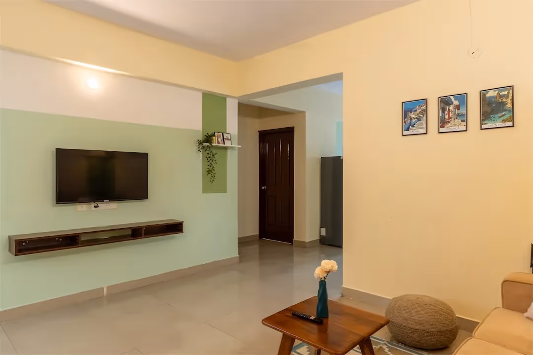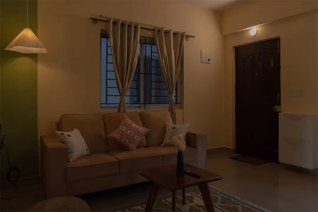 A cheerful 2BHK in Mahadevpura that feels both fresh and functional. The living room brings in an easy warmth with its soft green accents, natural light, and cozy setup that makes unwinding effortless. The interiors are thoughtfully done — simple, bright, and welcoming — perfect for anyone looking for a space that feels like home from day one. Located close to IT hubs like Bagmane Constellation and Google Ananta, and surrounded by cafés, gyms, and stores, it keeps everything within reach. Whether you’re working nearby or just want a calm, well-connected home, this one blends everyday convenience with quiet charm.
