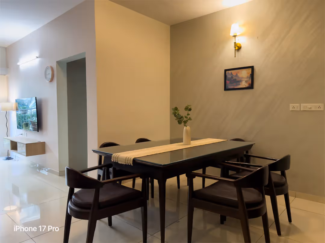 This 3BHK in Hebbal sits in one of North Bangalore’s most exciting pockets — right next to Phoenix Mall of Asia, the city’s newest and most hyped destination for food, fashion, and everything social. The home itself is calm and contemporary, with soft greys, warm wood tones, and a layout that feels open without being overwhelming. Large windows bring in greenery and light, giving the space a balanced, grounded vibe. What truly sets it apart is the community. With a resort-style pool, a well-equipped gym, and beautifully planned courtyards, this place has all the makings of the next “the” society in North Bangalore — the one everyone wants to be in. Add to that seamless access to the airport road, tech parks, schools, and healthcare, and you get a home that nails both lifestyle and convenience without trying too hard.