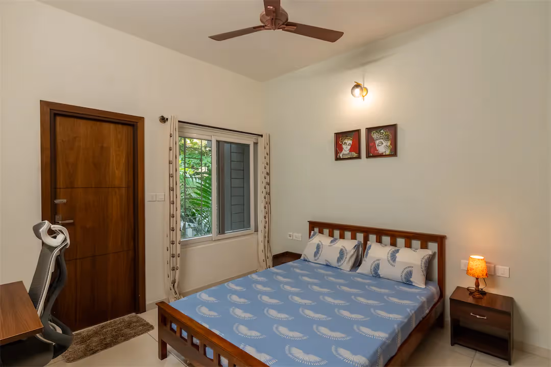 This 3BHK on the first floor is modern, warm, and thoughtfully designed for easy living. The living room blends wood tones with soft textures, opening onto a green-facing balcony that feels private and peaceful. There’s a quiet rhythm to the space — sunlight filters in through large windows, furniture is functional yet stylish, and every element feels intentional. The community offers top-tier amenities including a pool, gym, and lush open areas, creating a calm escape from city noise. Located close to Bellandur’s tech corridor and key social hubs, it balances work-life convenience with the comfort of a well-finished home.