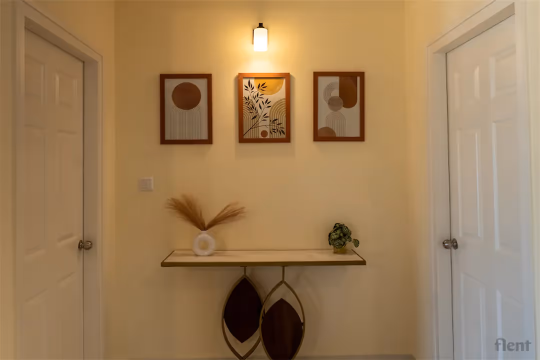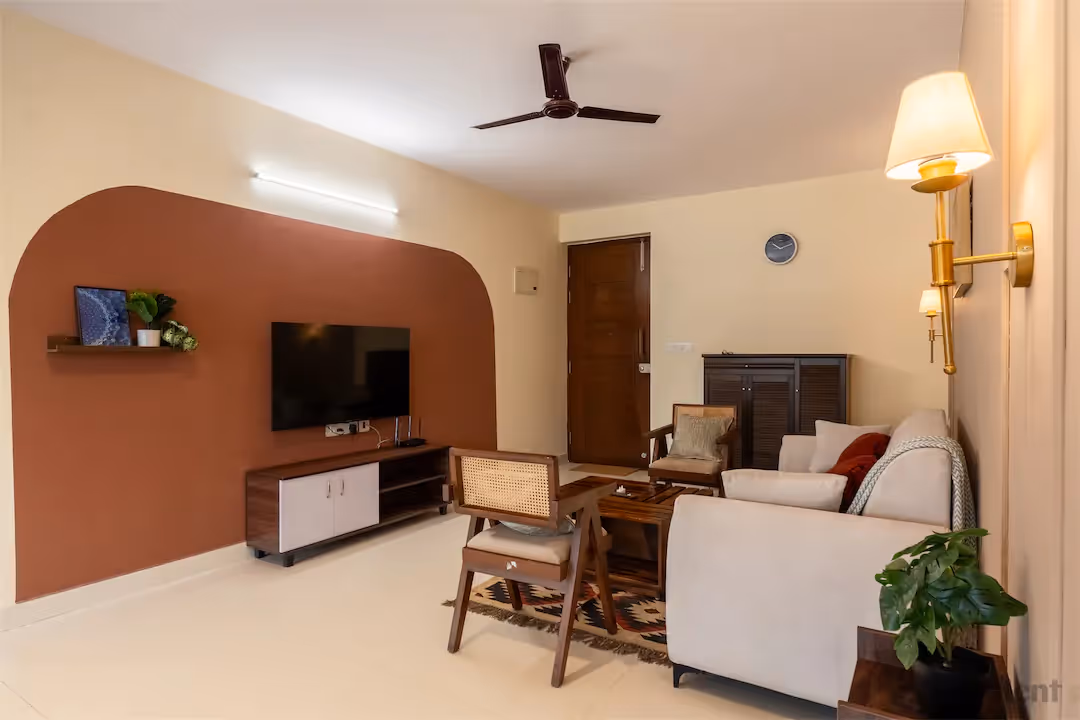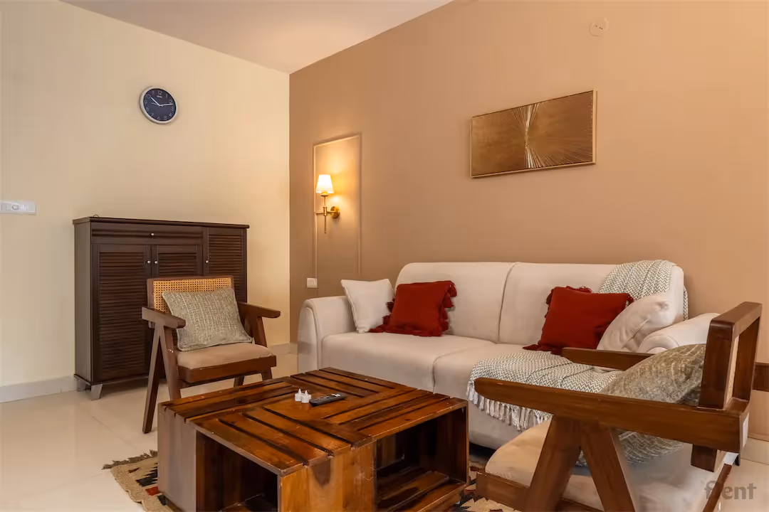 Step into a home that radiates calm sophistication, where modern minimalism meets warm, earthy tones. This thoughtfully designed 3BHK invites you to slow down and enjoy everyday living, with a living room that balances comfort and elegance through clean lines, natural light, and tasteful accents. The soft beige and clay-inspired palette creates a grounding ambiance, complemented by sleek furniture and subtle décor touches that make every corner feel intentional. Whether it’s unwinding with loved ones in the cozy lounge, hosting dinners with ease, or finding quiet moments by the warm glow of wall sconces, this home seamlessly blends functionality with charm. Perfect for those who value both style and serenity, it’s more than just a residence—it’s a space that feels alive, welcoming, and deeply personal.