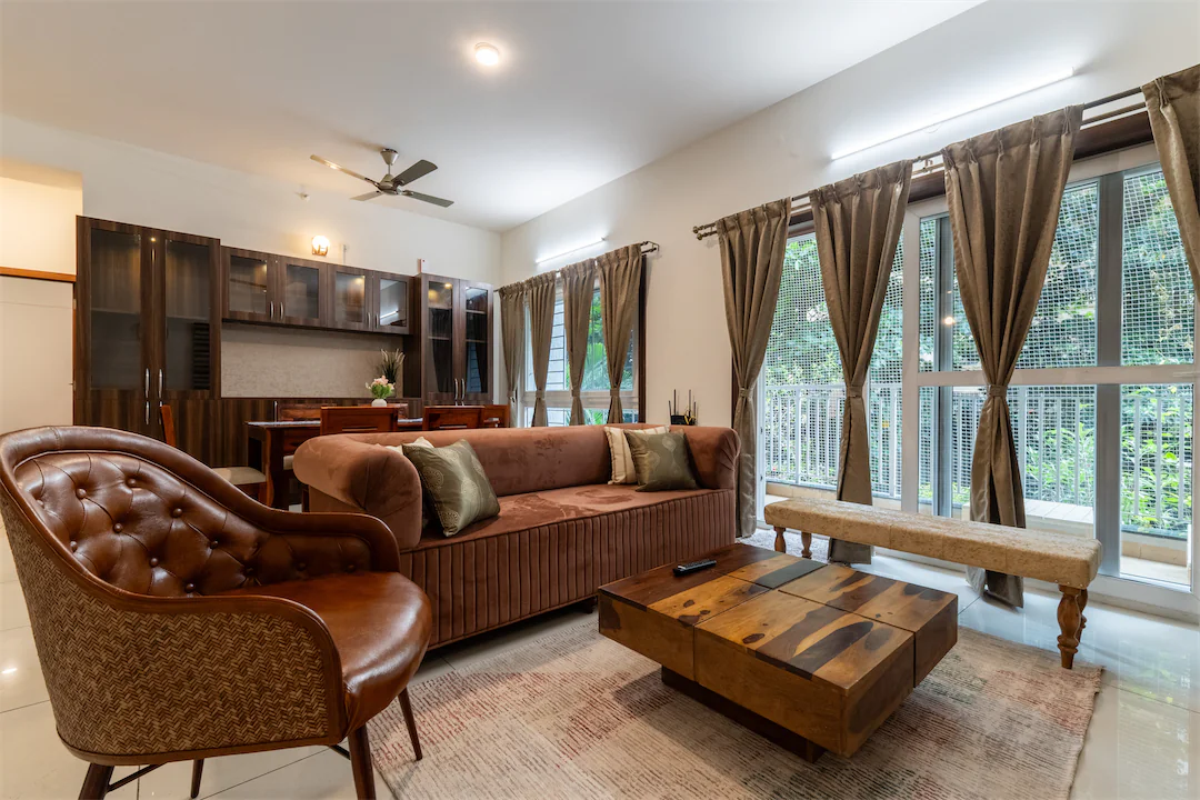 Discover an inviting blend of comfort and style in this charming 3BHK located in the heart of Kasavanahalli, Sarjapur Road. The airy, open-plan layout welcomes you with ample natural light, showcasing a tastefully furnished living area that flows seamlessly into a cozy dining space—perfect for family gatherings. Modern fittings, elegant lighting, and soft pastel accents elevate the interiors, while large windows ensure ventilation throughout the day. Each bedroom is thoughtfully designed for both functionality and relaxation, offering generous storage and tranquil views. The contemporary kitchen comes equipped with ample cabinetry and a convenient sink setup, making daily cooking a delight. Strategically situated near schools, supermarkets, and major workplaces, this residence offers easy connectivity and a hassle-free commute. Experience urban living at its finest with this beautifully designed home that perfectly balances style, convenience, and comfort.